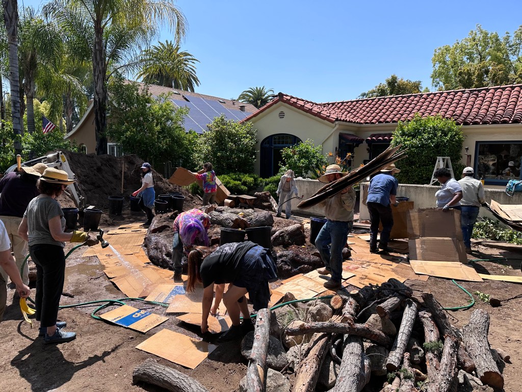 The landscaper who was running the workshop, Shawn Maestretti of Studio Petrichor, said that they were not going to plant in the hugel until September. I am not sure why, but I think it might be because the hugel will compress and get lower over time so maybe they want to give it a chance to settle. They asked me if I would like to come back in September for a planting workshop and I said that would be cool.